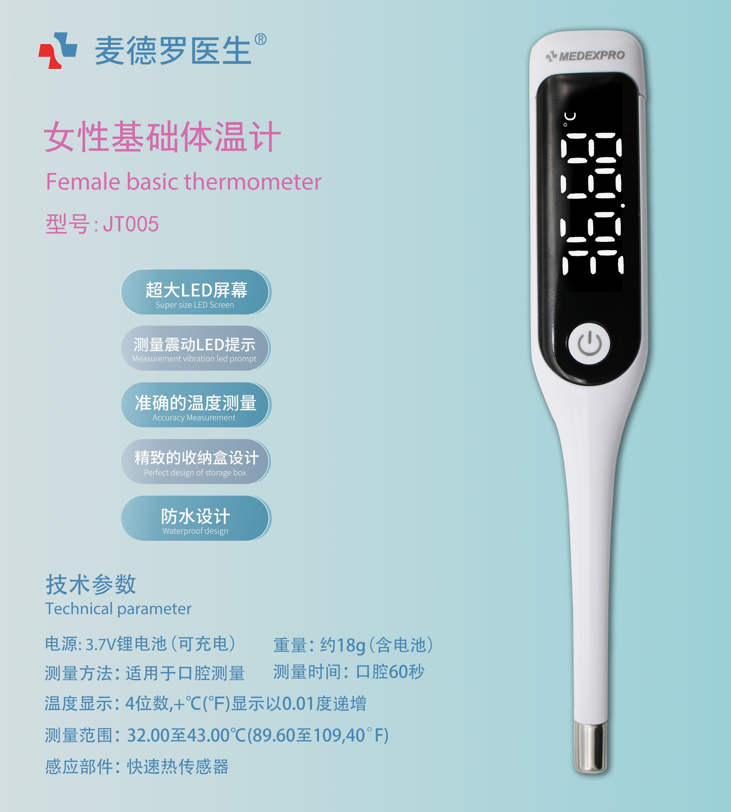 女性基礎體溫計(軟頭) JT002BTS